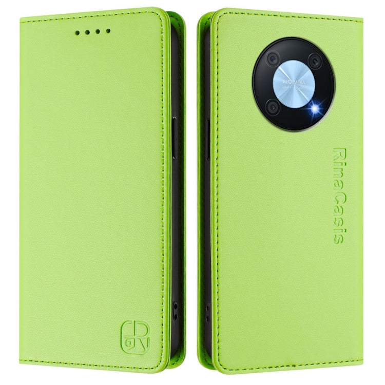 Funda de Cuero Huawei Enjoy 50 Pro Nova Y90 Rc01 con Doble Pliegue Succión Magnética Rfid (Verde Hierba)