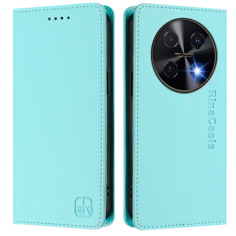 Funda de Cuero Huawei Nova 12I Global Rc01 con Doble Pliegue y Succión Magnética Rfid (Verde Menta)
