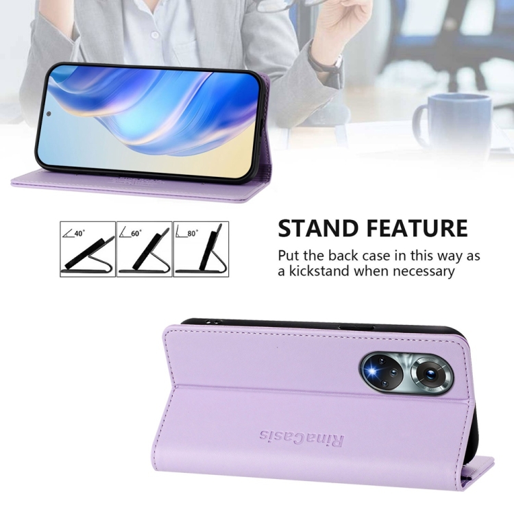 Funda de Cuero con Doble Pliegue y Succión Magnética Rfid para Huawei Nova 9 Rc01 (Morado Claro)