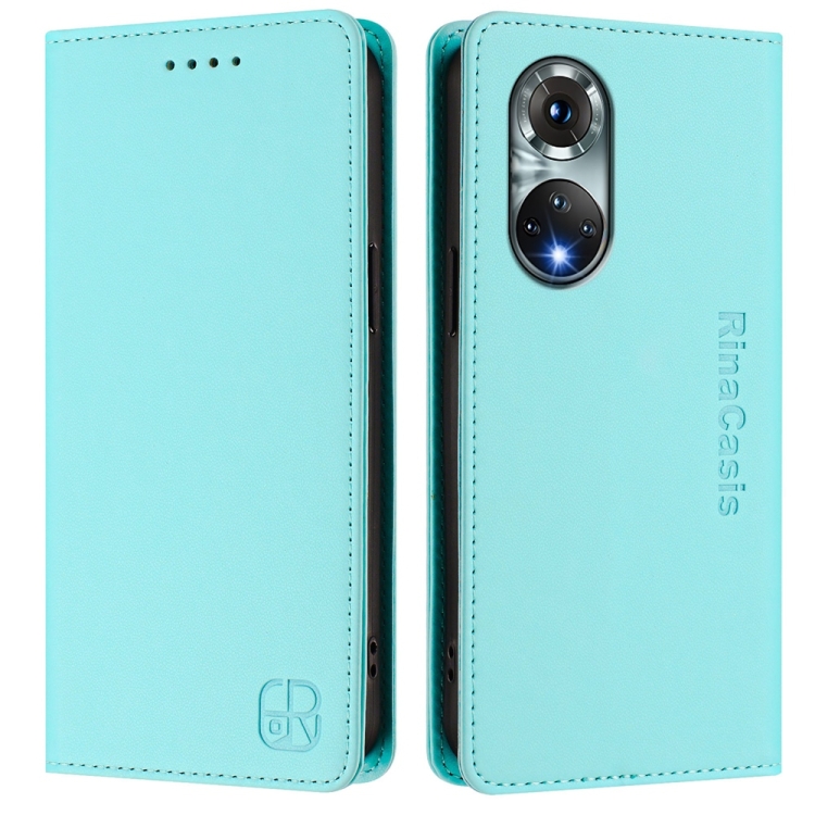 Funda de Cuero con Doble Pliegue y Succión Magnética RFID para Huawei Nova 9 Rc01 (Verde Menta)