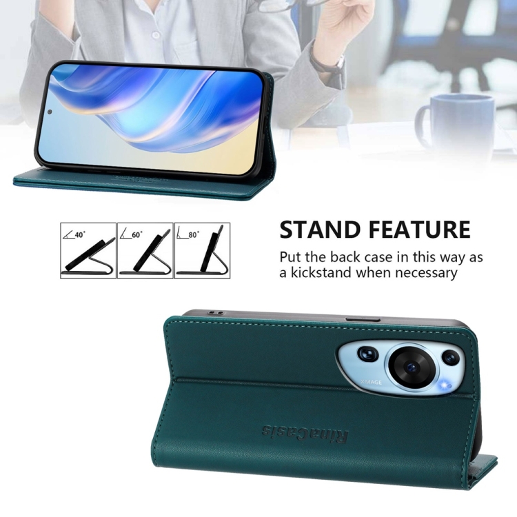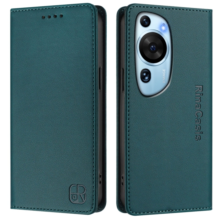 Funda de Cuero Huawei P60 Art Rc01 doble pliegue succión magnética Rfid (Verde Oscuro)