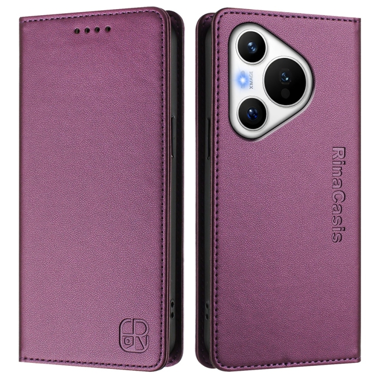 Funda de Cuero Huawei Pura 70 Rc01 con Doble Pliegue y Succión Magnética Rfid (Violeta)