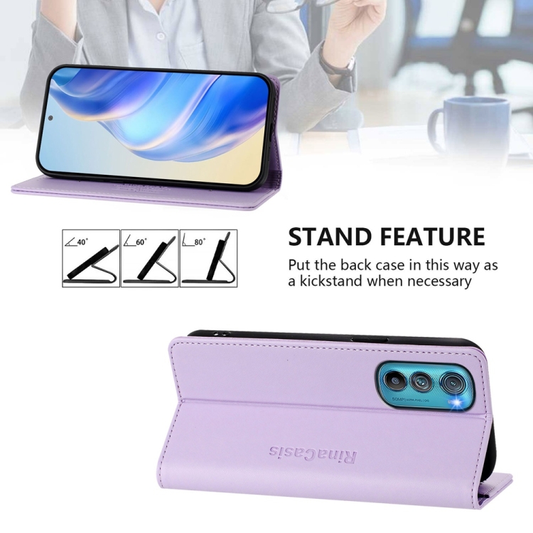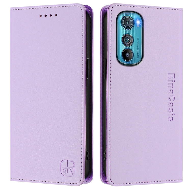 Funda de Cuero con Doble Pliegue y Succión Magnética Rfid para Motorola Edge 30 Rc01 (Morado Claro)