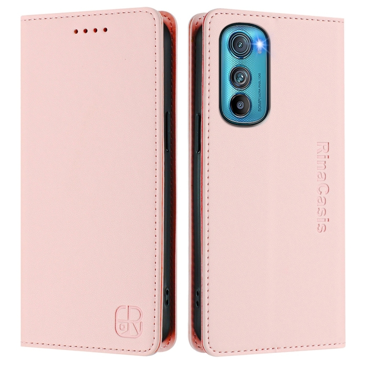 Funda de Cuero con Doble Pliegue y Succión Magnética Rfid para Motorola Edge 30 Rc01 (Rosa)