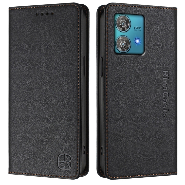 Funda de Cuero con Doble Pliegue y Succión Magnética RFID para Motorola Edge 40 Neo Rc01 (Negra)