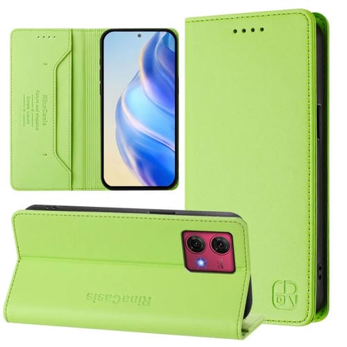 Funda de Cuero con Doble Pliegue y Succión Magnética Rfid para Motorola Moto G84 Rc01 (Verde Hierba)