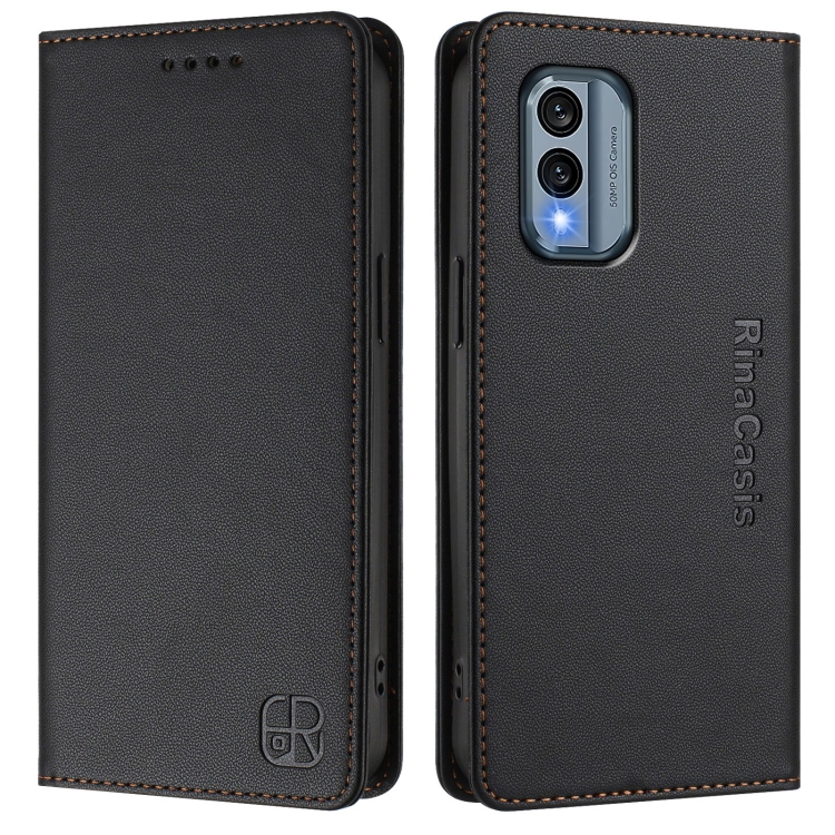 Funda de Cuero con Doble Pliegue y Succión Magnética RFID para Nokia X30 5G Rc01 (Negra)