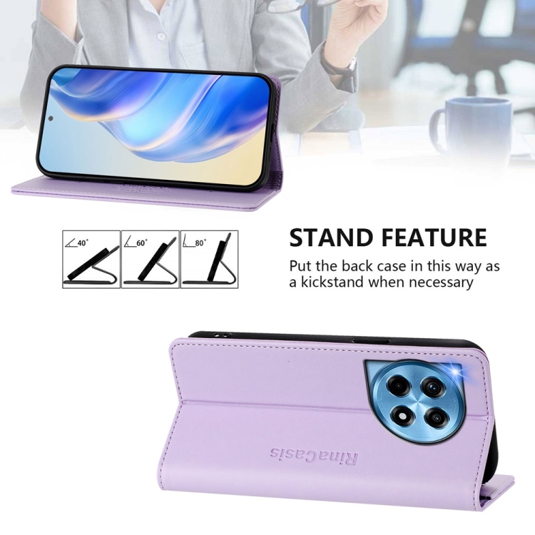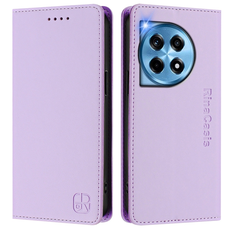 Funda de Cuero con Doble Pliegue y Succión Magnética RFID para OnePlus 12 Global Rc01 (Morado Claro)