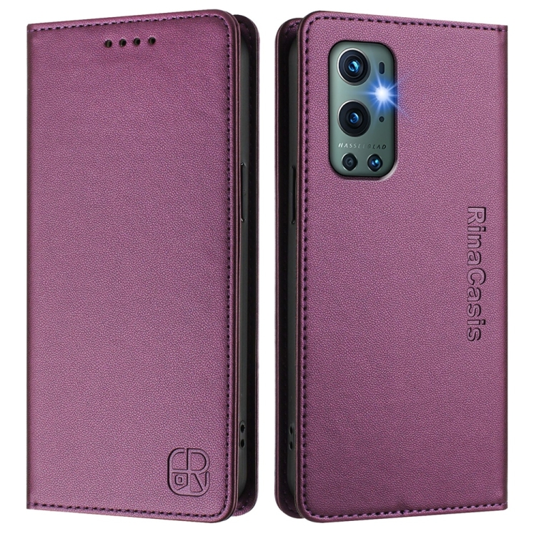 Funda de Cuero con Doble Pliegue y Succión Magnética Rfid para OnePlus 9 Pro Rc01 (Violeta)