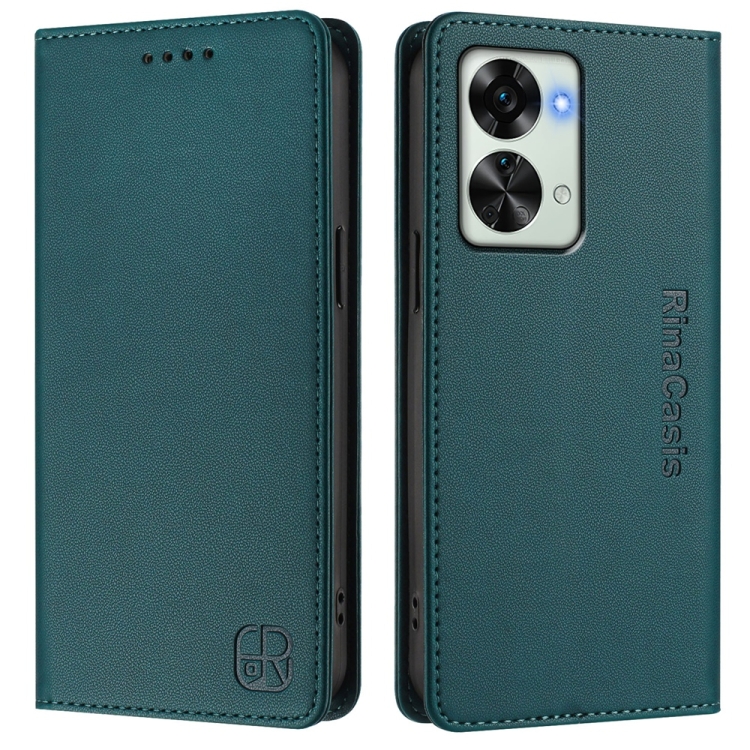 Funda de Cuero con Doble Pliegue y Succión Magnética RFID para OnePlus Nord 2T Rc01 (Verde Oscuro)