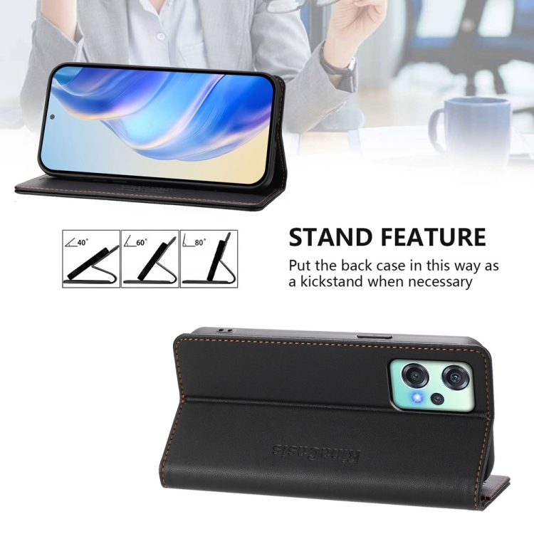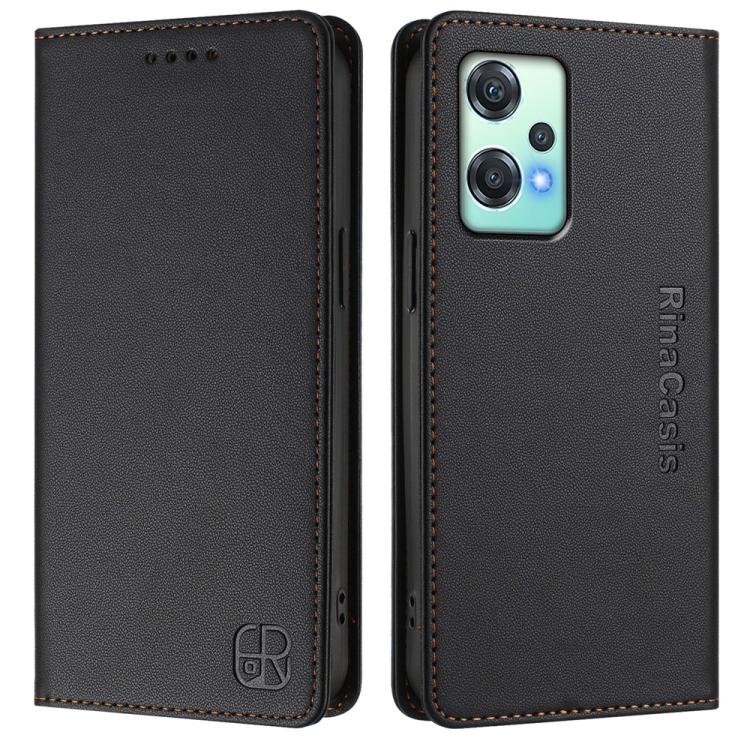 Funda de Cuero con Doble Pliegue y Succión Magnética Rfid para OnePlus Nord Ce 2 Lite 5G/Nord 2 Lite Rc01 (Negro)