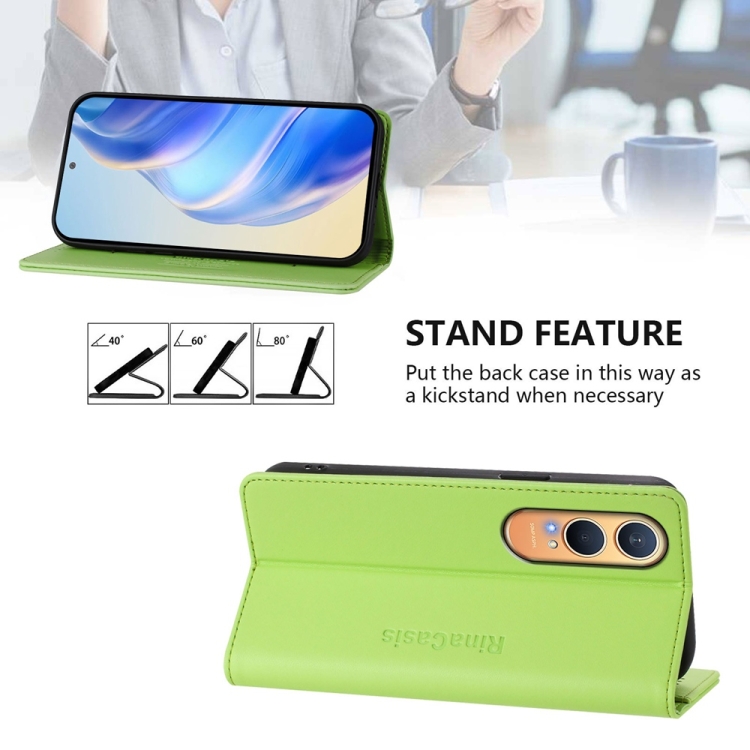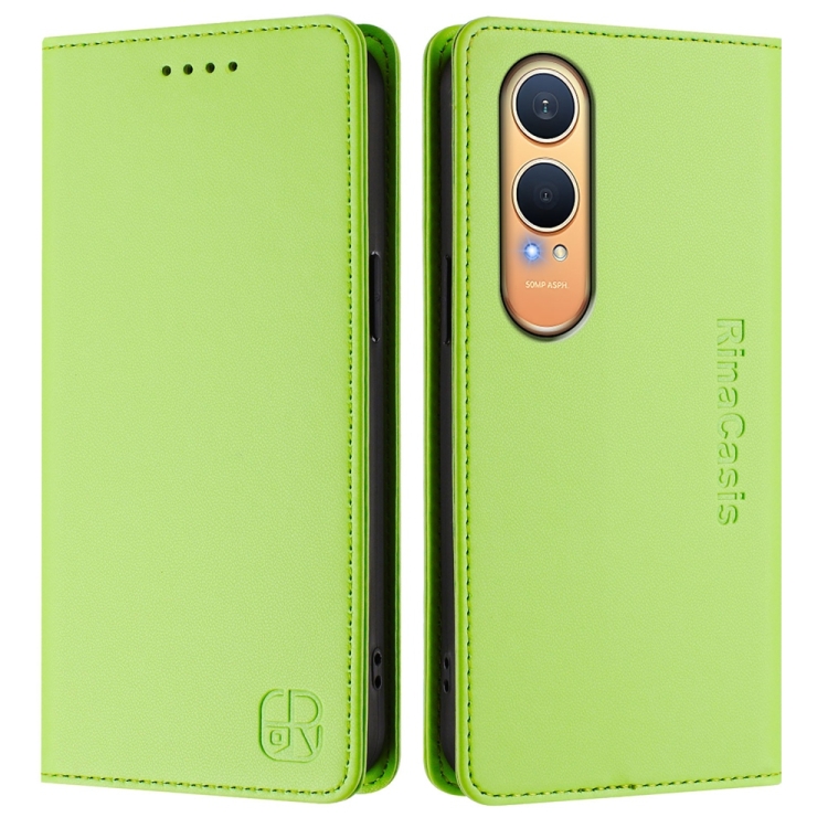 Funda de Cuero para OnePlus Nord Ce4 Lite Rc01 con Doble Pliegue y Succión Magnética Rfid (Verde Hierba)