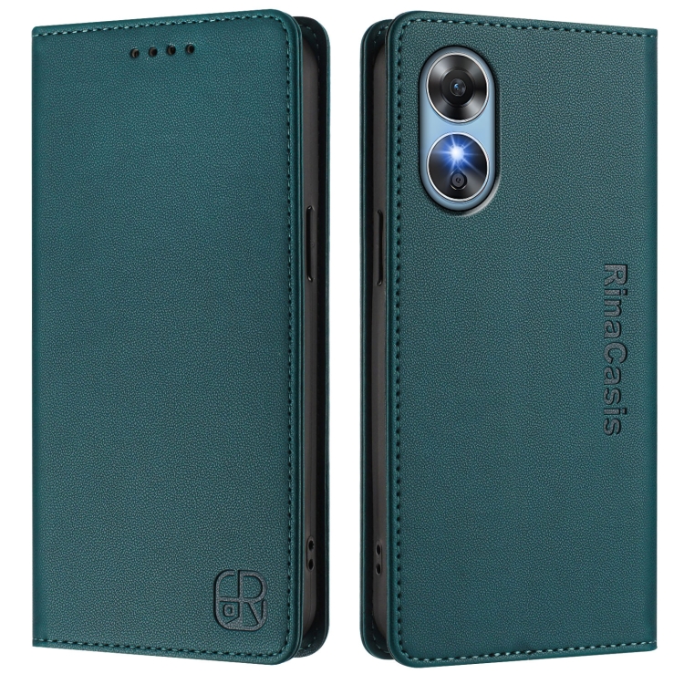 Funda de Cuero con Doble Pliegue y Succión Magnética Rfid para Oppo A17 4G Global / A17K Rc01 (Verde Oscuro)