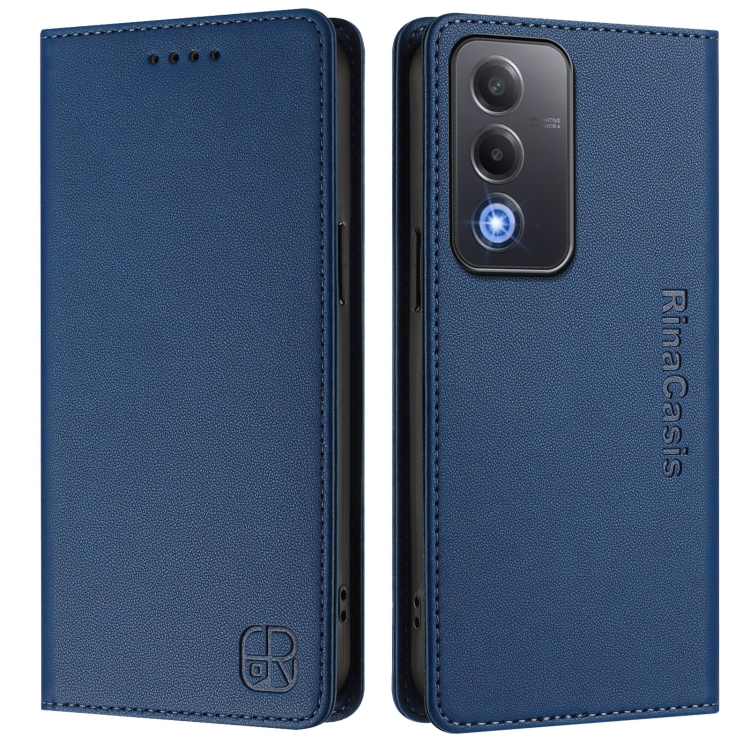 Funda de Cuero con Doble Pliegue y Succión Magnética Rfid para Oppo A3 Pro 5G Global Rc01 (Azul Oscuro)