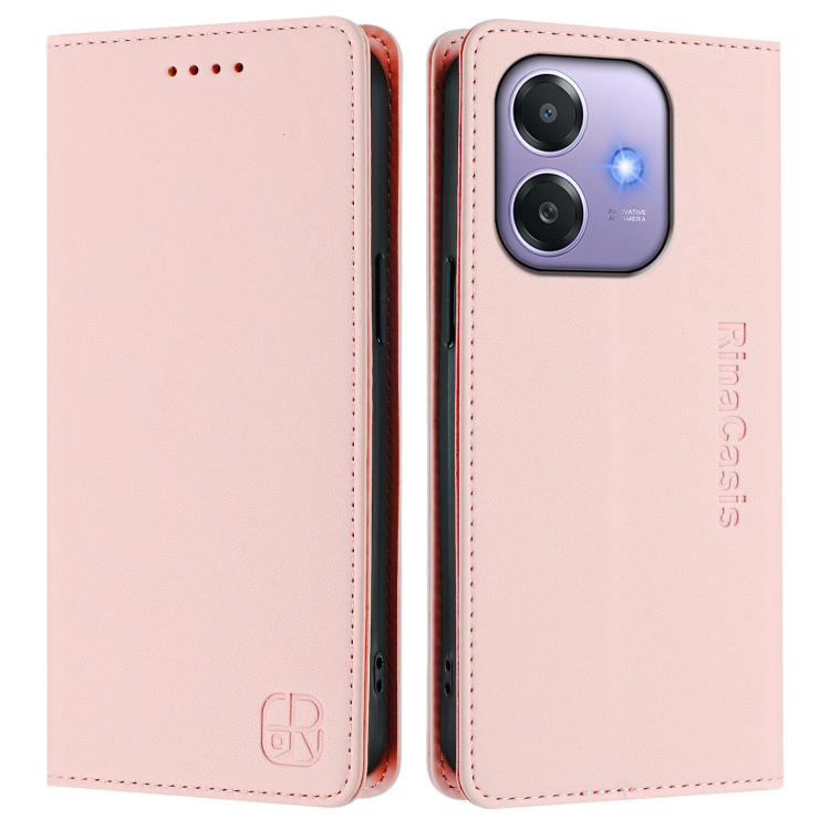 Funda de Cuero con Doble Pliegue y Cierre Magnético Rfid para Oppo A3X 5G / 4G / A3 5G / 4G Rc01 (Rosa)
