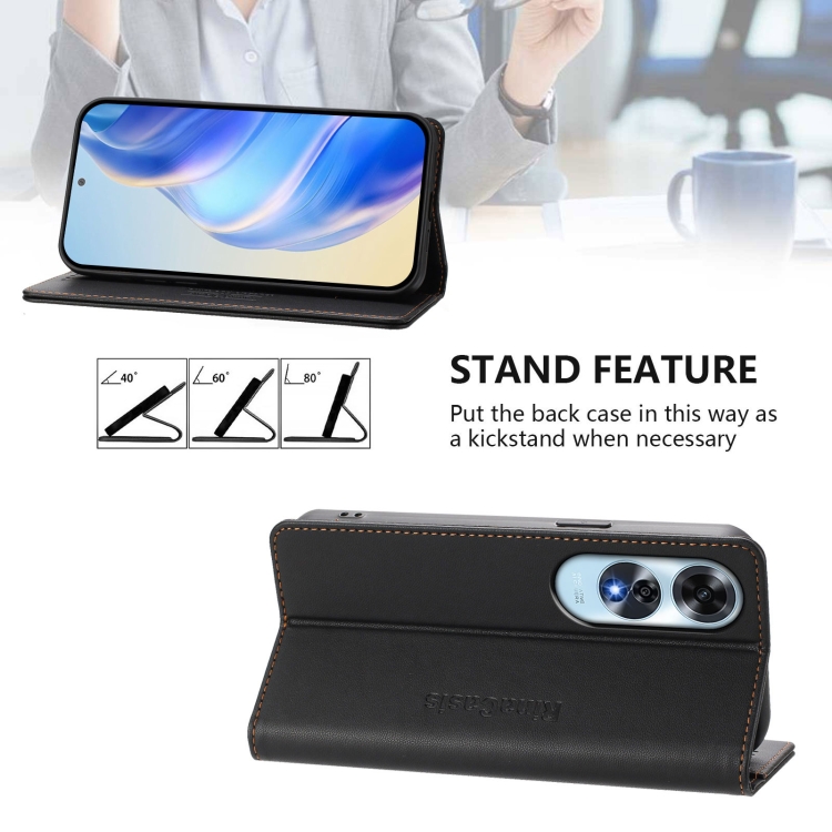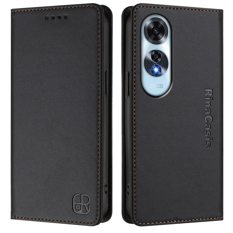 Funda de Cuero con Doble Pliegue y Succión Magnética Rfid para Oppo A60 4G Global Rc01 (Negra)