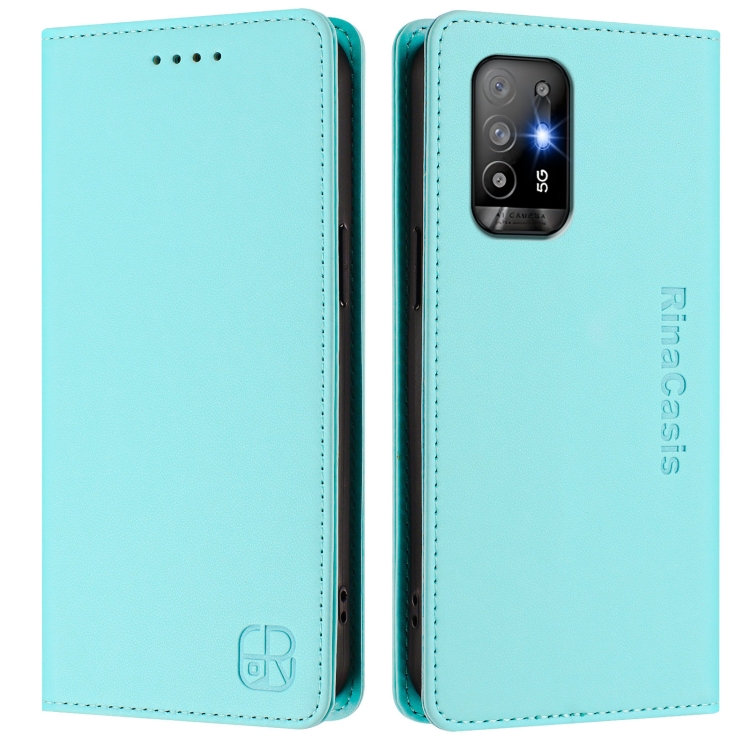 Funda de Cuero con Doble Pliegue y Succión Magnética Rfid para Oppo A94 5G Rc01 (Verde Menta)