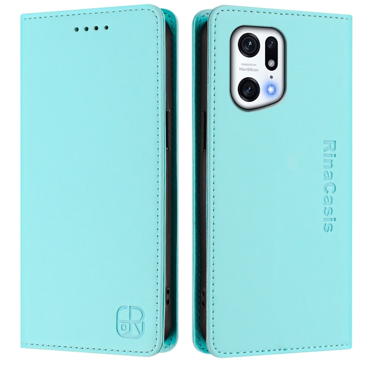Funda de Cuero con Doble Pliegue y Succión Magnética Rfid para Oppo Find X5 Pro Rc01 (Verde Menta)