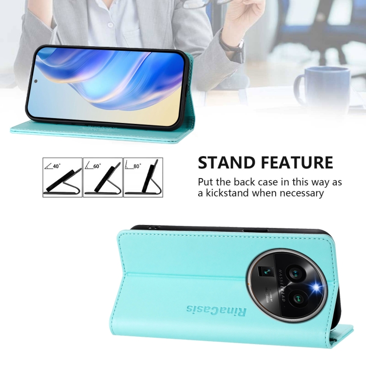Funda de Cuero con Doble Pliegue y Succión Magnética Rfid para Oppo Find X6 Pro Rc01 (Verde Menta)