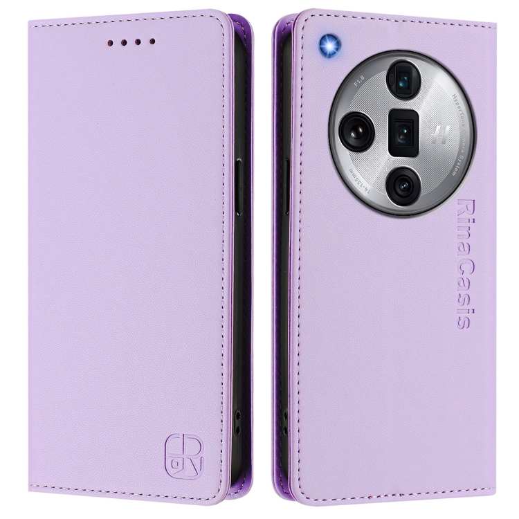 Funda de Cuero con Doble Pliegue y Succión Magnética Rfid para Oppo Find X7 Ultra Rc01 (Morado Claro)