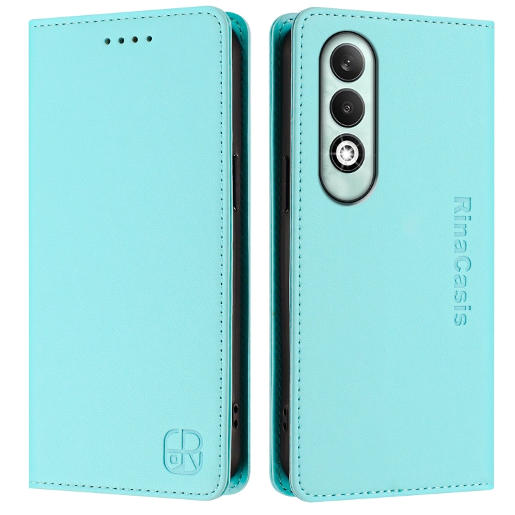 Funda de Cuero con Doble Pliegue y Succión Magnética Rfid para Oppo K12X 5G Global Rc01 (Verde Menta)