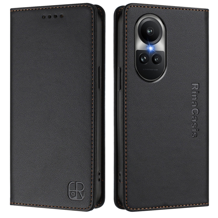 Funda de Cuero con Doble Pliegue y Succión Magnética Rfid para Oppo Reno10/Reno10 Pro Global Rc01 (Negra)