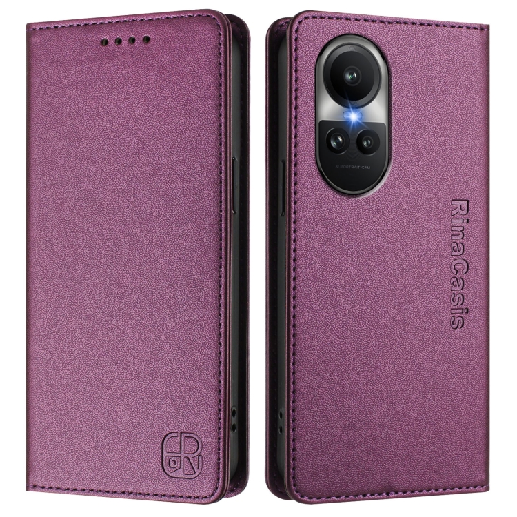 Funda de Cuero con Doble Pliegue y Succión Magnética Rfid para Oppo Reno10/Reno10 Pro Global Rc01 (Violeta)