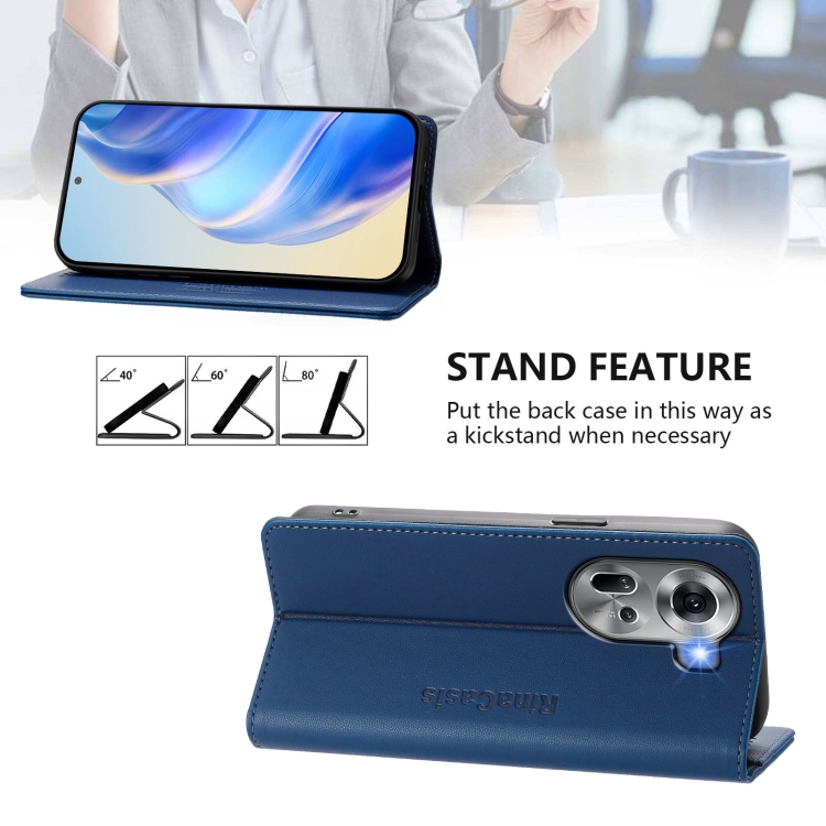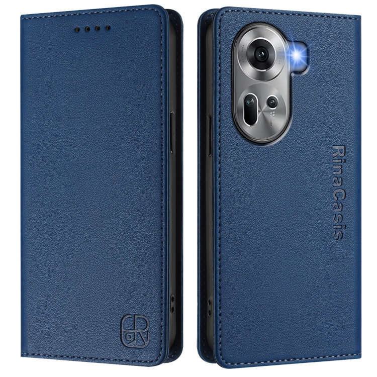 Funda de Cuero con Doble Pliegue y Succión Magnética Rfid para Oppo Reno11 5G Global Rc01 (Azul Oscuro)