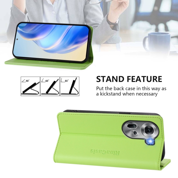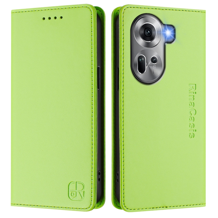 Funda de Cuero con Doble Pliegue y Succión Magnética Rfid para Oppo Reno11 5G Global Rc01 (Verde Hierba)
