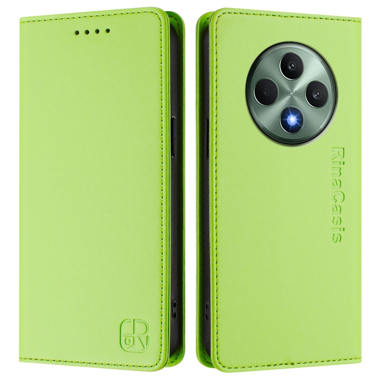 Funda de Cuero con Doble Pliegue y Succión Magnética Rfid para Oppo Reno12 F 5G / 4G Global Rc01 (Verde Hierba)