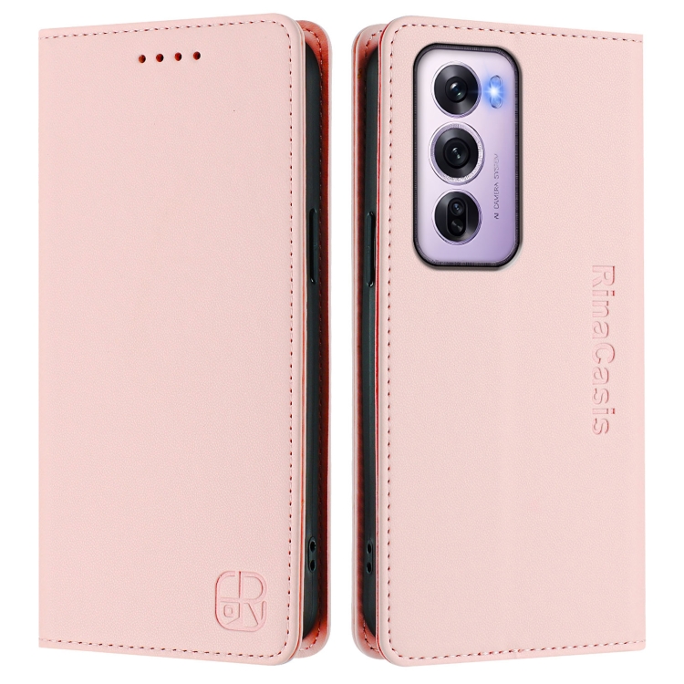 Funda de Cuero con Doble Pliegue y Succión Magnética Rfid para Oppo Reno12 Pro 5G Global Rc01 (Rosa)
