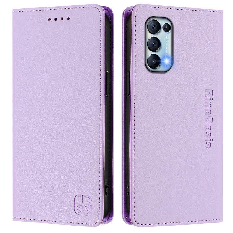 Funda de Cuero Rfid con Doble Pliegue y Succión Magnética para Oppo Reno5 5G / 4G / Find X3 Lite Rc01 (Morado Claro)