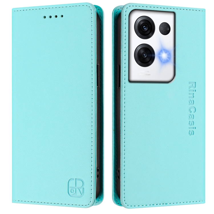 Funda de Cuero con Doble Pliegue y Succión Magnética Rfid para Oppo Reno8 Pro 5G Global Rc01 (Verde Menta)