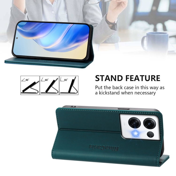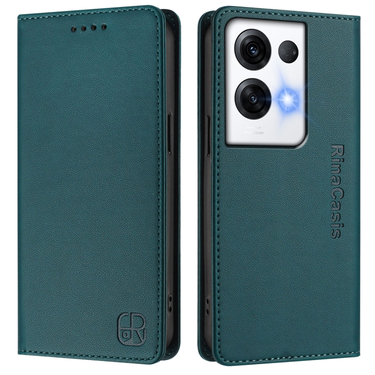 Funda de Cuero con Doble Pliegue y Succión Magnética Rfid para Oppo Reno8 Pro 5G Global Rc01 (Verde Oscuro)