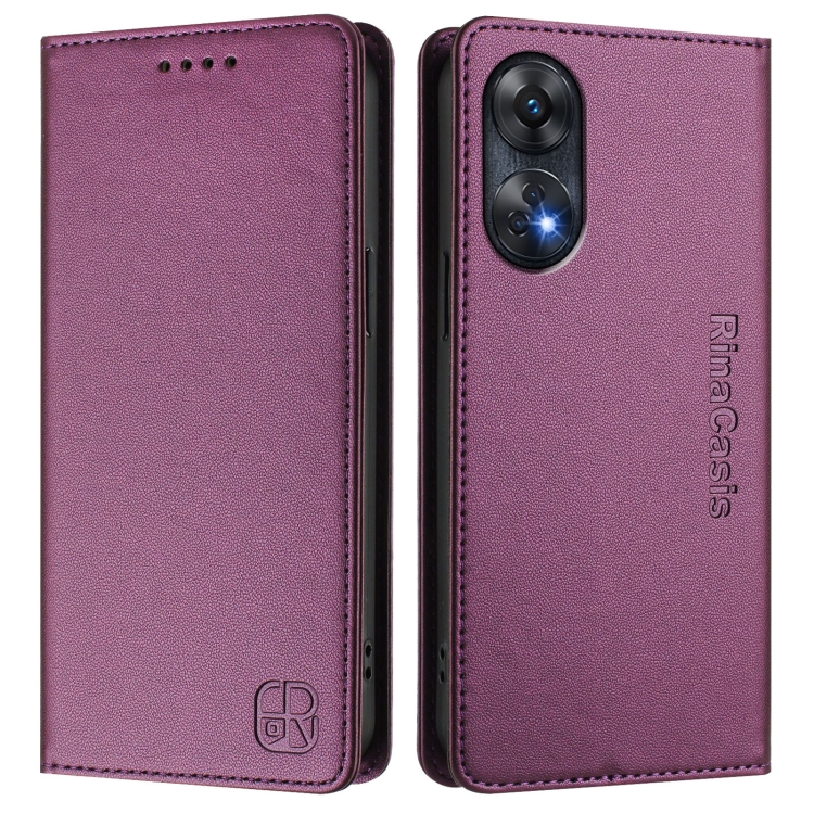 Funda de Cuero con Doble Pliegue y Succión Magnética Rfid para Oppo Reno8 T 4G Rc01 (Violeta)