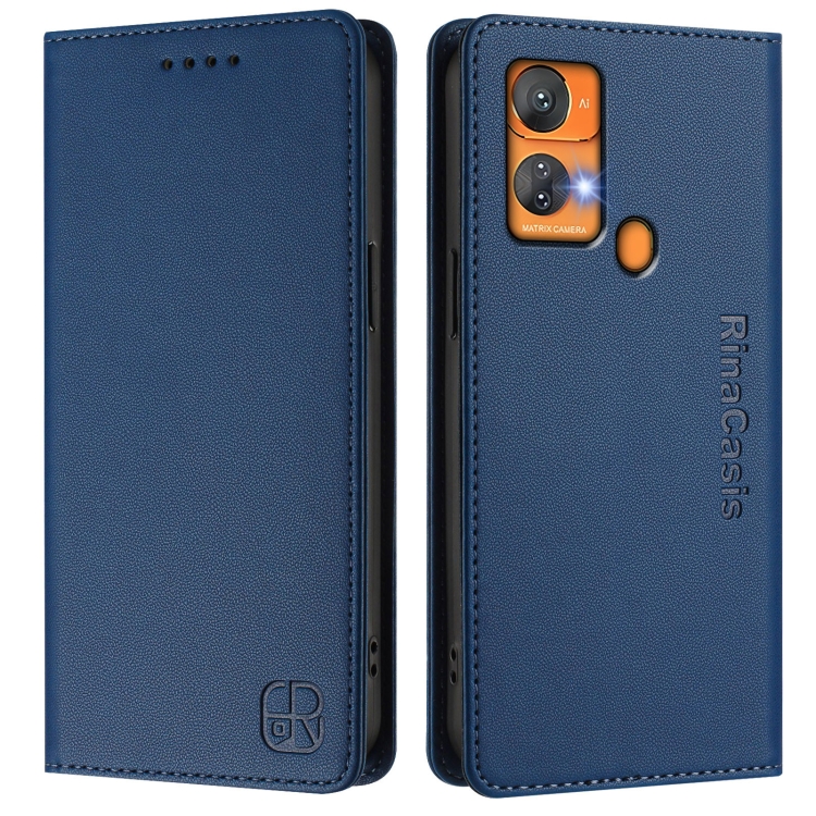 Funda de Cuero con Doble Pliegue y Succión Magnética Rfid para Oukitel C33 Rc01 (Azul Oscuro)