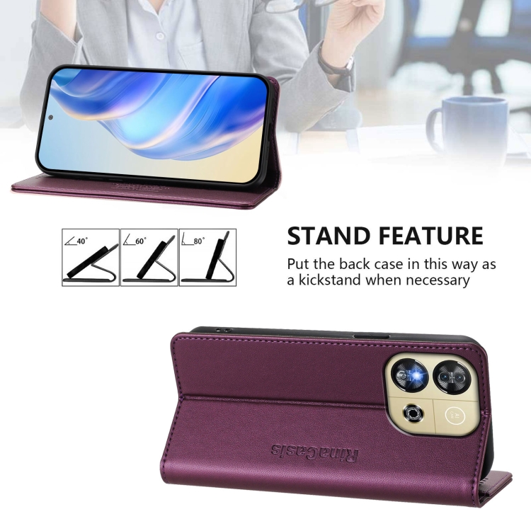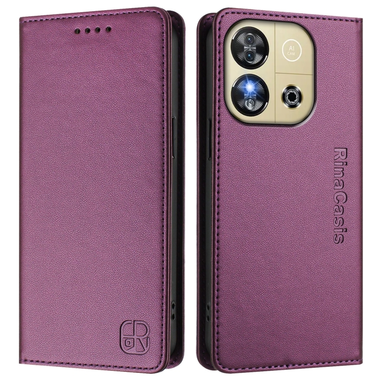 Funda de Cuero con Doble Pliegue y Succión Magnética Rfid para Oukitel C57 C57S C57 Pro Rc01 (Violeta)