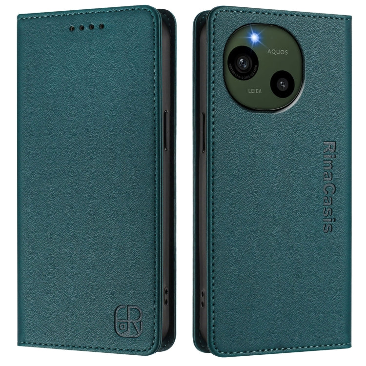 Funda de Cuero para Sharp Aquos R9 Sh-51E Rc01 con Doble Pliegue y Succión Magnética Rfid (Verde Oscuro)