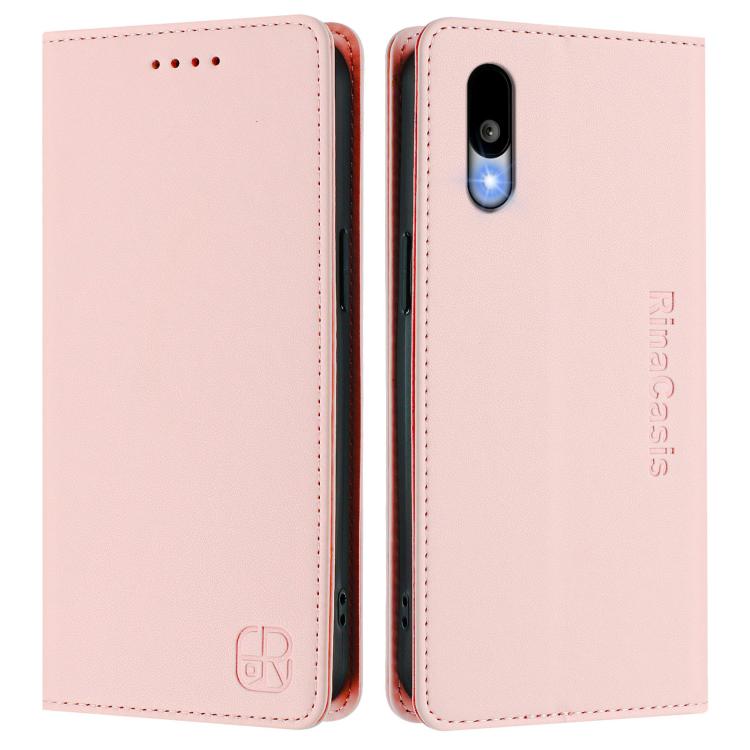 Funda de Cuero con Doble Pliegue y Succión Magnética RFID para Sharp Basio Active3 Rc01 (Rosa)