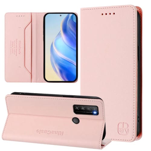 Funda de Cuero para TCL 30 Xl/T701Dl Rc01 con Doble Pliegue y Succión Magnética Rfid (Rosa)