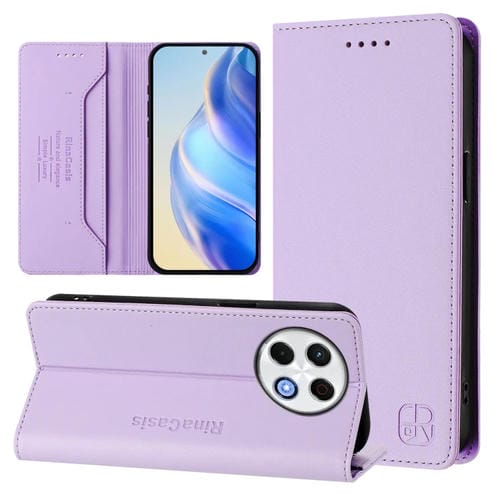 Funda de Cuero con Doble Pliegue y Succión Magnética Rfid para Tecno Spark 30 Pro 4G Rc01 (Morado Claro)
