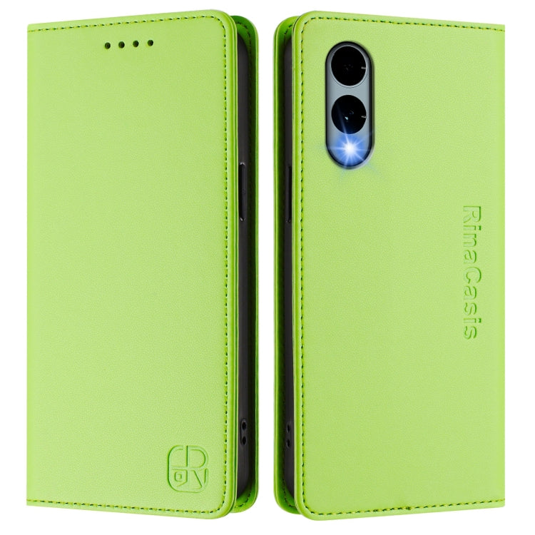 Funda de Cuero con Doble Pliegue y Succión Magnética RFID para Fujitsu Arrows We2 F-52E Rc01 (Verde Hierba)