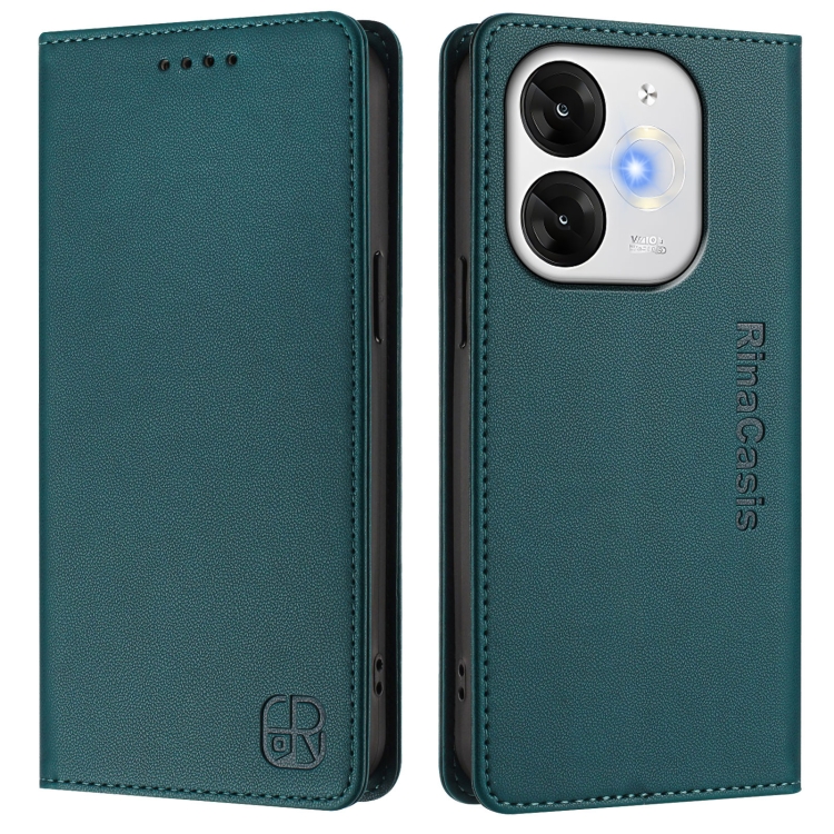 Funda de Cuero con Doble Pliegue y Succión Magnética Rfid para Itel A80 4G Rc01 (Verde Oscuro)