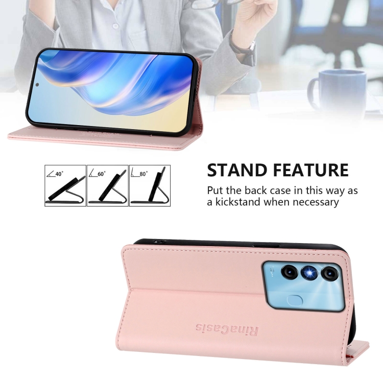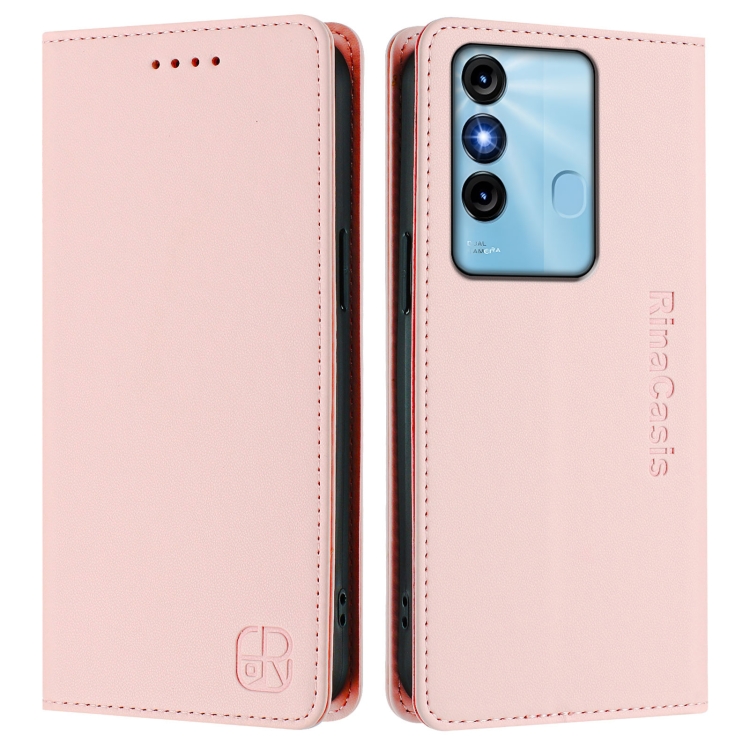 Funda de Cuero con Doble Pliegue y Succión Magnética Rfid para Itel P38/S17/Vision 3 Rc01 (Rosa)