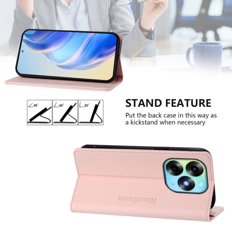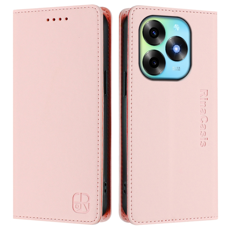 Funda de Cuero Itel S23+ Rc01 con Doble Pliegue y Succión Magnética Rfid (Rosa)