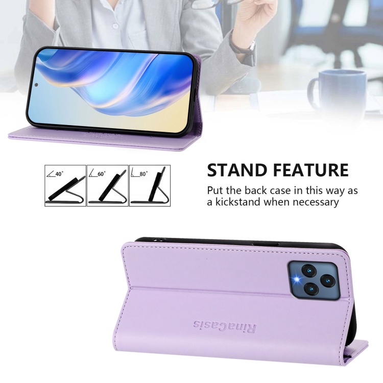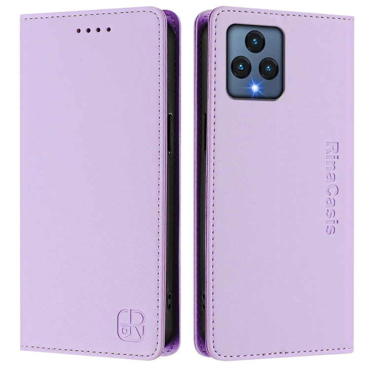 Funda de Cuero con Doble Pliegue y Succión Magnética Rfid para Teléfono T-Mobile Revvl 6 5G/6X 5G Rc01 (Morado Claro)