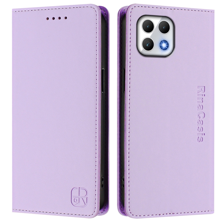 Funda de Cuero con Doble Pliegue y Succión Magnética RFID para Teléfono T-Mobile Revvl 7 5G Rc01 (Morado Claro)