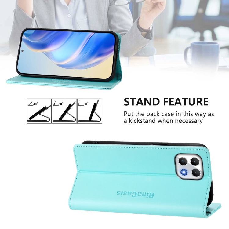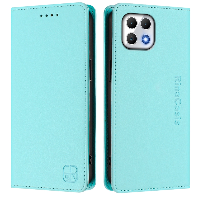 Funda de Cuero con Doble Pliegue y Succión Magnética Rfid para T-Mobile Revvl 7 5G Rc01 (Verde Menta)