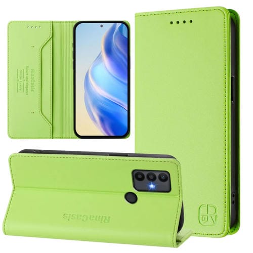 Funda de Cuero para TCL 30 Se Rc01 con Doble Pliegue y Succión Magnética Rfid (Verde Hierba)