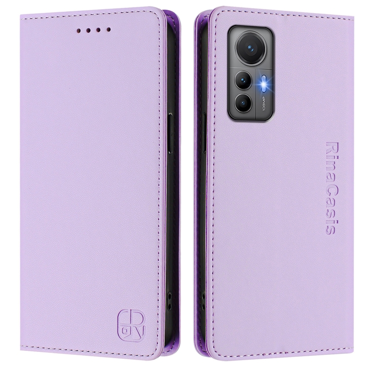 Funda de Cuero con Doble Pliegue y Succión Magnética Rfid para Xiaomi 12 Lite Rc01 (Morado Claro)